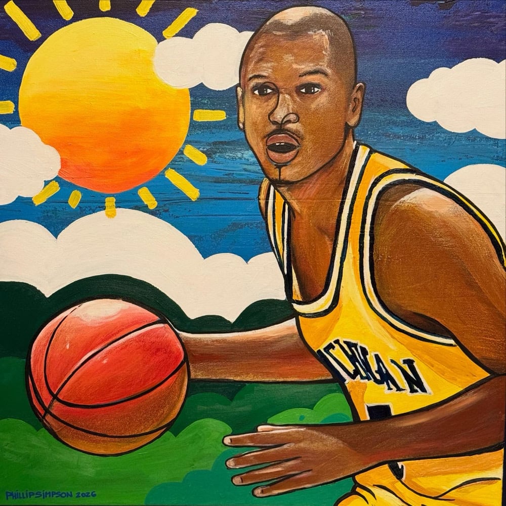 Growing up.... The "FAB FIVE" was everything. I was so happy to turn on the TV and watch U of M play. Fab Five is for sure one of the reasons I attended Michigan for school. Because of my love for basketball at an early age, Jalen Rose was a household name. Fast forward to now, I just had the pleasure of working with Fate Detroit and Jalen Rose Academy Detroit students. It's only right that I painted the big homie Jalen Rose. #goblue